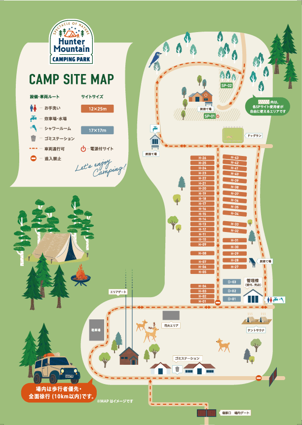 ※スキー場の斜面を活かしているため、一部サイトには約5°~10°の傾斜があります。