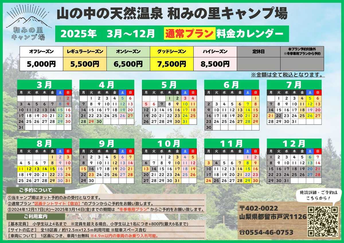 《和みの里キャンプ場の営業期間・ご予約について》