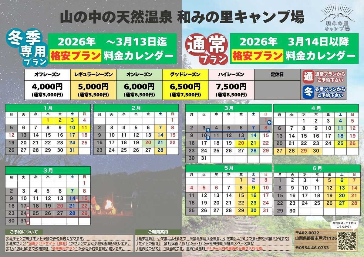 ●冬季は、サイト全体が日陰となりますので、防寒対策の準備をしてお越し下さいませ。
